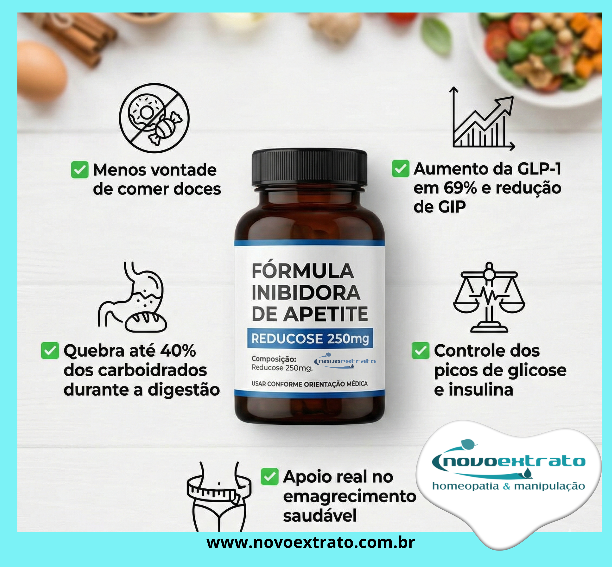 Este produto não deve ser utilizado por menores de 18 anos sem orientação médica. "SE PERSISTIREM OS SINTOMAS, O MÉDICO DEVERÁ SER CONSULTADO" "Os resultados e indicações referentes ao uso desse produto foram avaliados e comprovados pelo fabricante deste insumo farmacêutico. Não garantimos os resultados descritos, estes variam de pessoa para pessoa dependendo de diversos fatores como alimentação, prática de exercícios físicos, presença de outras patologias, bem como, o uso correto do produto conforme descrito na posologia.”